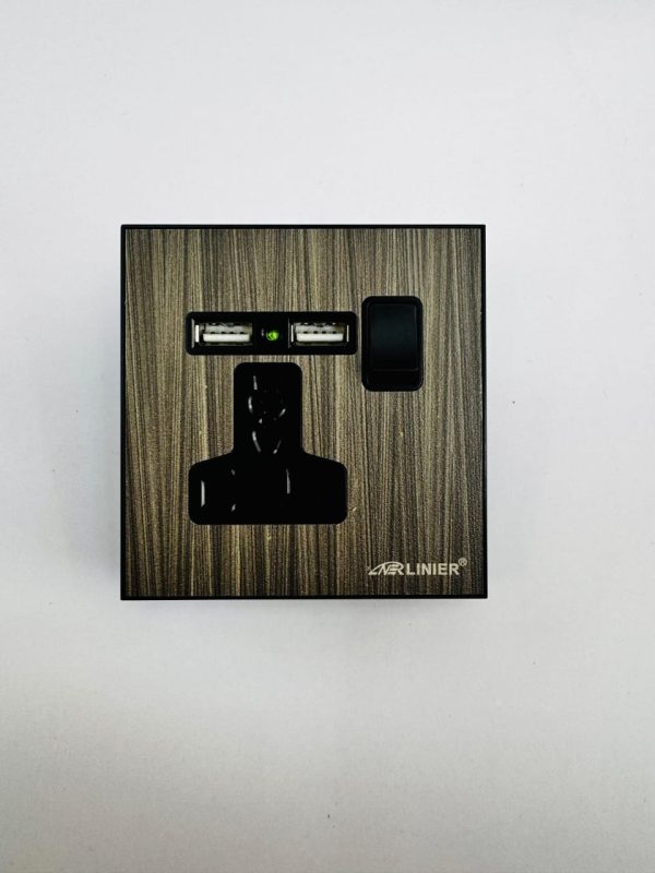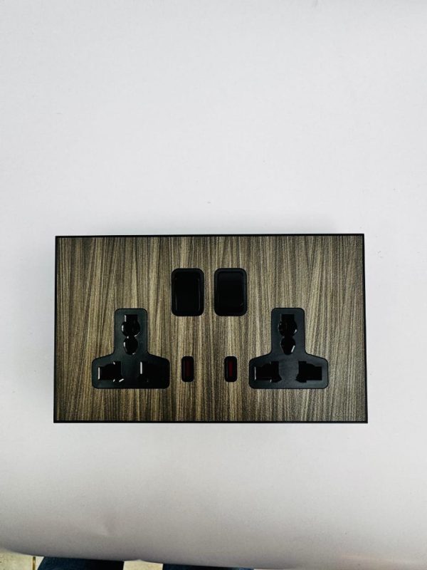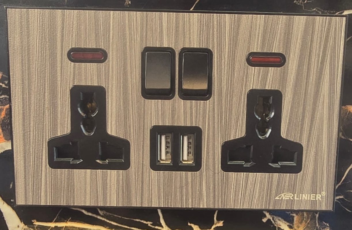 13A Single Switch Socket + 2 usb With Neon- Wood Grain