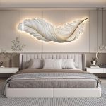 120Cm Large White Feather Led Tri-color wall light