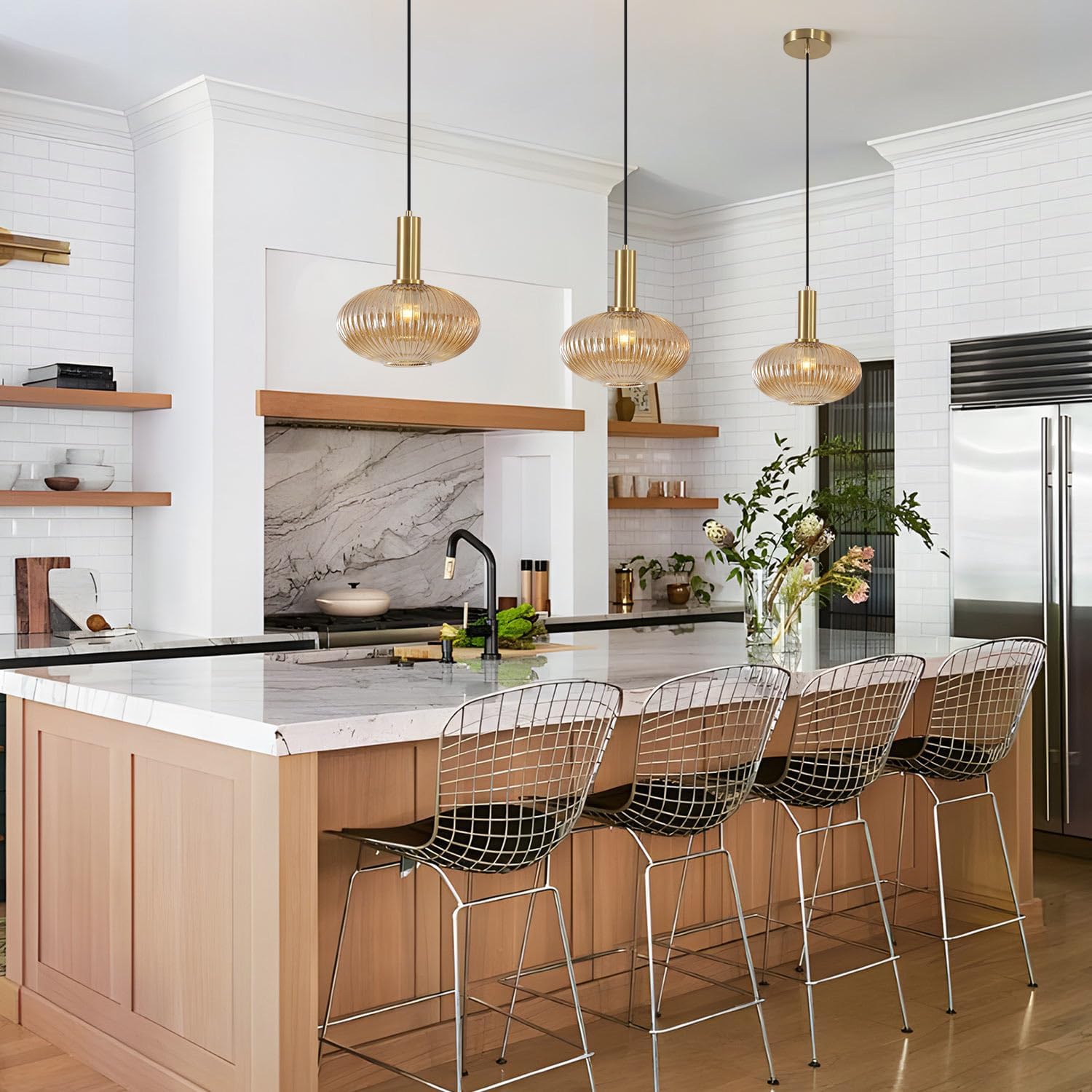 - 【Wide Application】This brass gold striped pendant light is ideal for kitchen island, over sink, dining room, bathroom, bedroom, living room, study room, entryway, hallway, porch, farmhouse, foyer, and even club, restaurant, coffee bar .