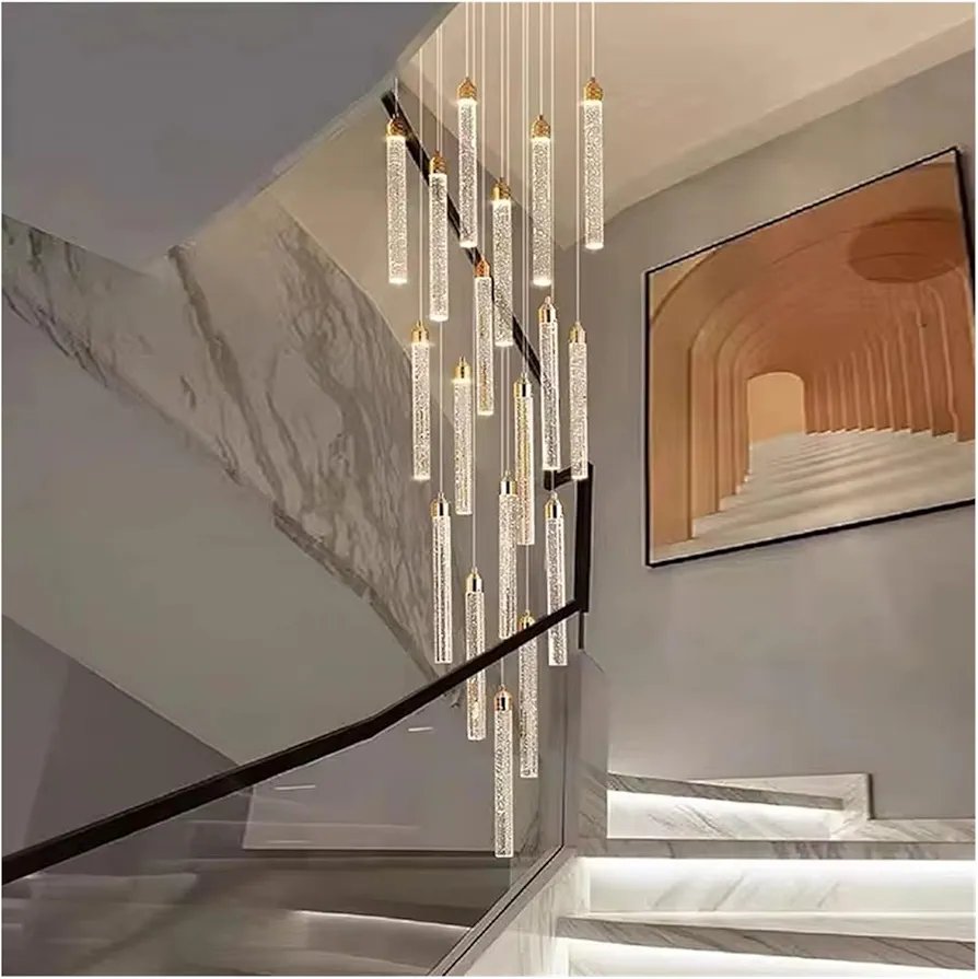 MATERIAL: Made of iron and crystal, this staircase chandelier not only provides ample light, but also adds a touch of sophistication and elegance to your home decor.