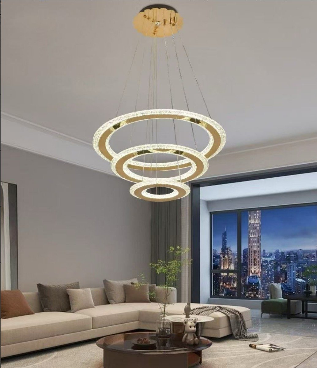 3 Layer Acrylic Round Pendant Chandelier- Gold