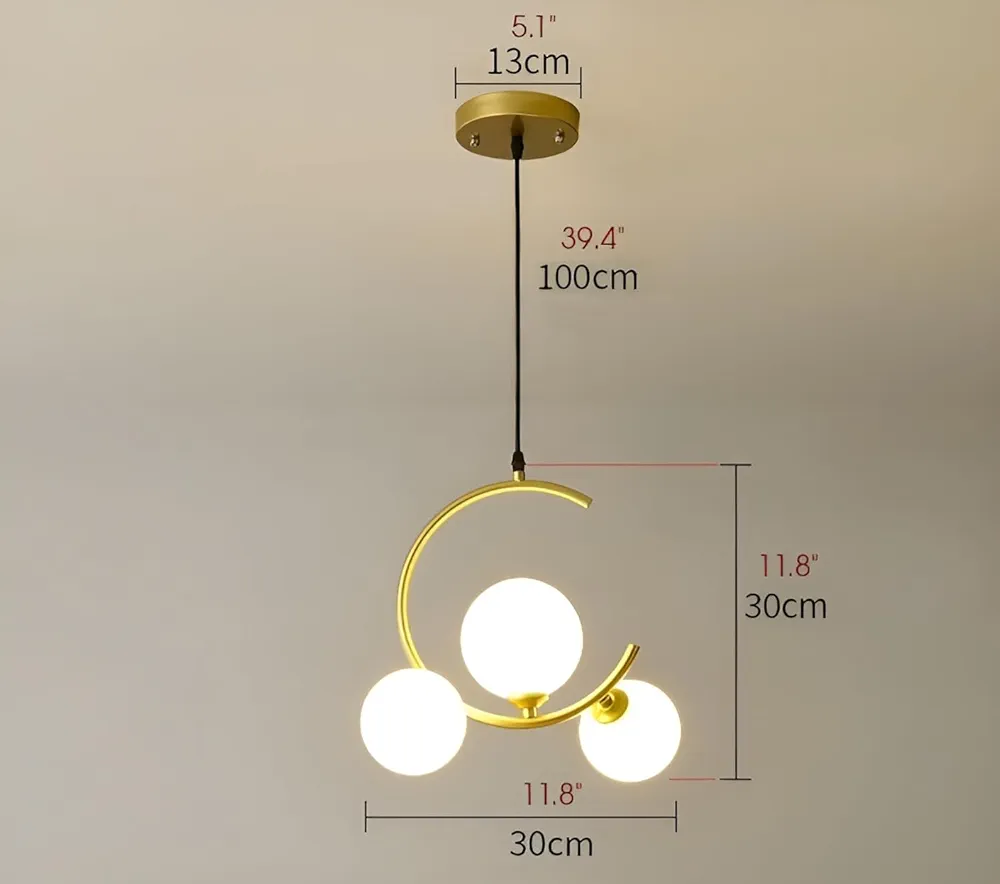 - Dimensions: The overall length of the pendant light is approximately 120 cm (47.24 inches), with each glass shade measuring 15 cm (5.91 inches) in diameter and 12 cm (4.72 inches) in height.