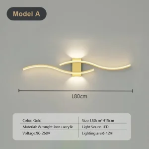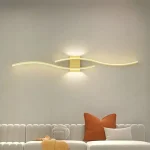 LED Wall Lamp Modern Indoor Wave Bar Sconces USB Rechargeable Battery Powered Lights Long Strip Acrylic Iron Lighting for Living Room Bedside Bedroom.