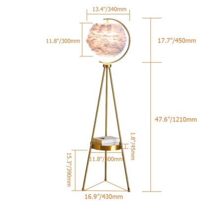 - ?【Lamp Information】: Width of the light: 38 cm (15 inches); Height of lamp: 45 cm (18 inches); Material: feather, metal. Supports all standard E26 sockets and incandescent bulbs, CFL, LED or Edison bulbs up to 40W