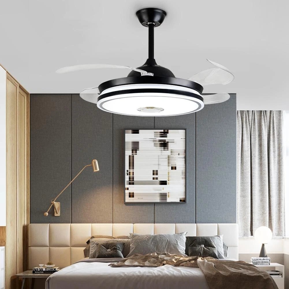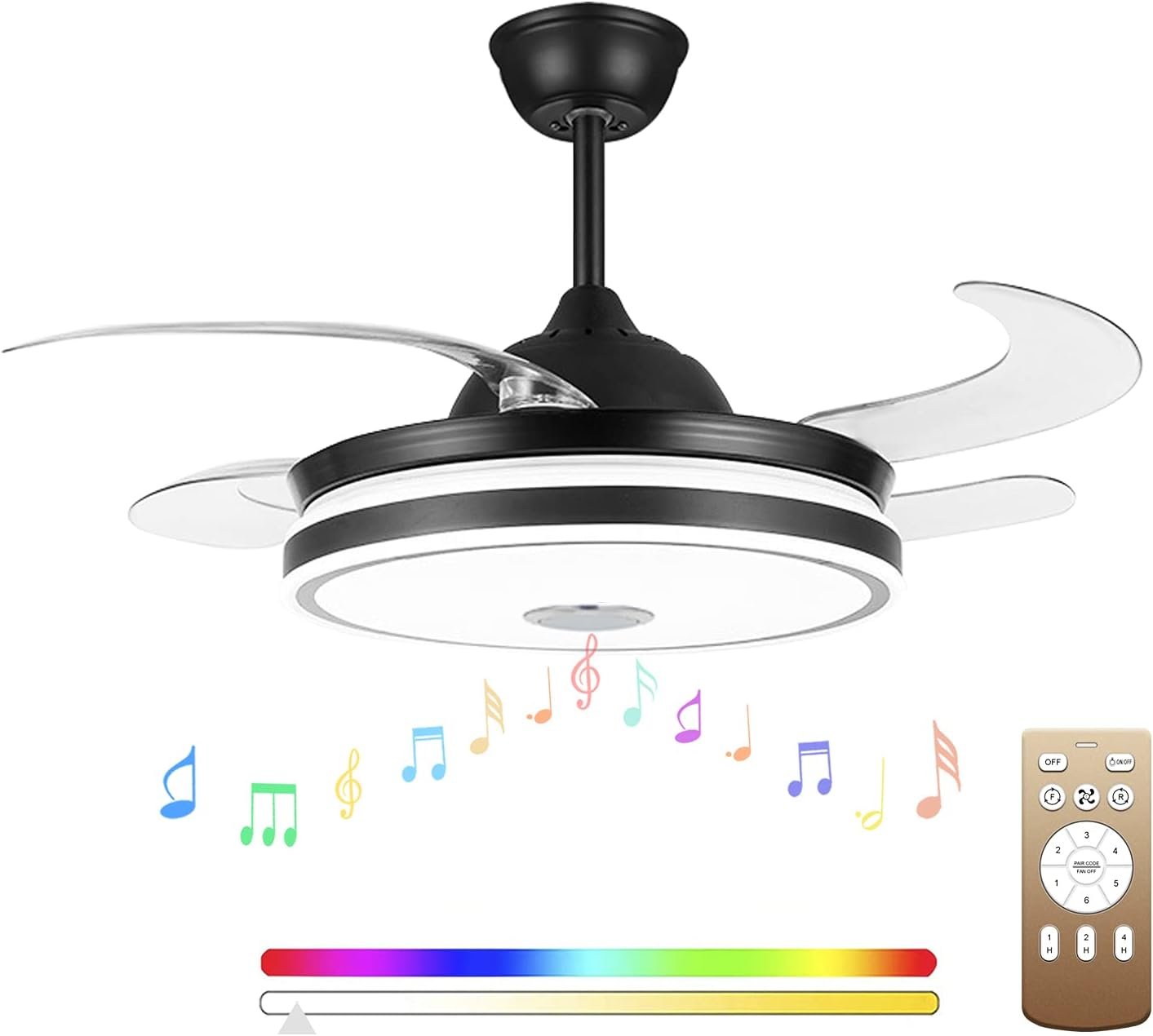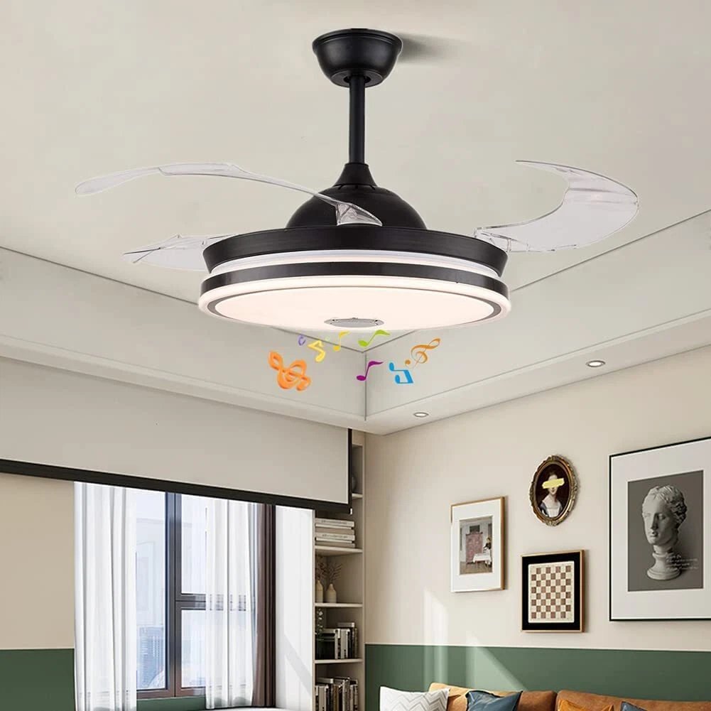 4 in 1 Chandelier Ceiling Fan 】: This chandelier is a pefect combination of Retractable fan, 3-color ordinary light and Bluetooth speaker. It will meet all your lighting needs, making your life more smart and comfortable.